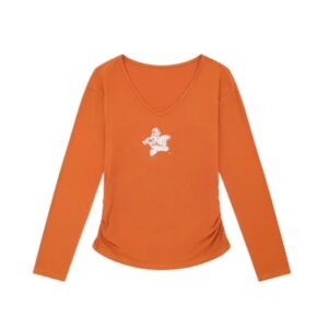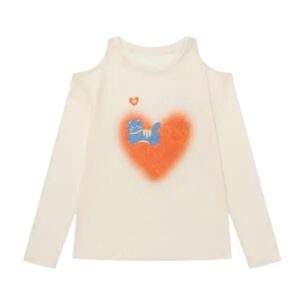 Casual Semi-Sheer Long Sleeve Top with Heart Print – Apricot