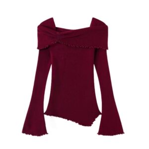Burgundy Elegant Slim-Fit Long Sleeve Top
