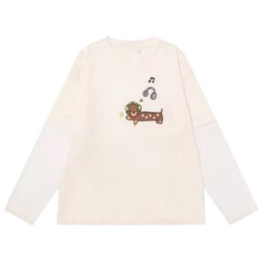 Apricot Long Sleeve Top with Cartoon Puppy Print